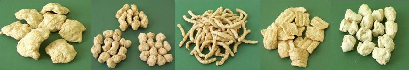 大豆组织拉丝蛋白是 济南百脉海源膨化机械有限公司采用先进膨化生产设备,将含油1%的低温豆粕(低温食用豆粕是采用溶剂浸出法制油后,经低温脱溶处理,蛋白变性较小,水溶性蛋白质含量较高的食用大豆粕,是加工蛋白的必要原料),大豆浓缩蛋白及分离蛋白等经挤压、膨化机的高温高压处理而成,具有良好的吸水性、保油性和纤维状结构,口感类似于肉类,是一种理想的高蛋白肉制品添加物。在肉制品应用中,可降低加工成本,提高产品中的蛋白含量,使之具有更高的营养价值;经浸泡后,制成各种形状的炒、 煮、炸等各种风味的素肉食品。蛋白素肉又称大豆组织蛋白,它是以大豆蛋白为主要原料,经过粉碎、调制、膨化等工艺生产的健康新食材。其口感润滑筋道、易入味,可用于凉拌、热炒、煲汤、油炸等。